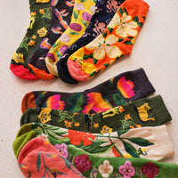 Voyagez avec des chaussettes colorées aux motifs de nature fantastiques